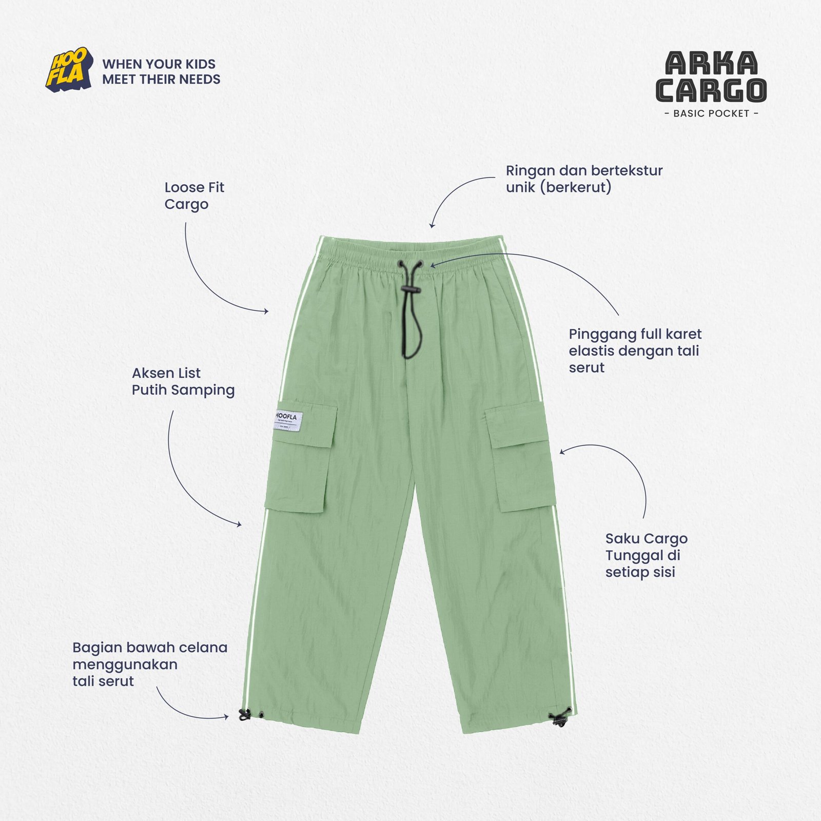 – Bahan Parasut Crinkle Super Ringan,